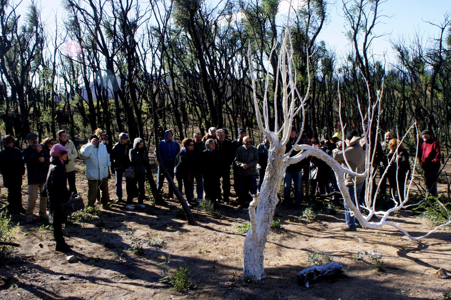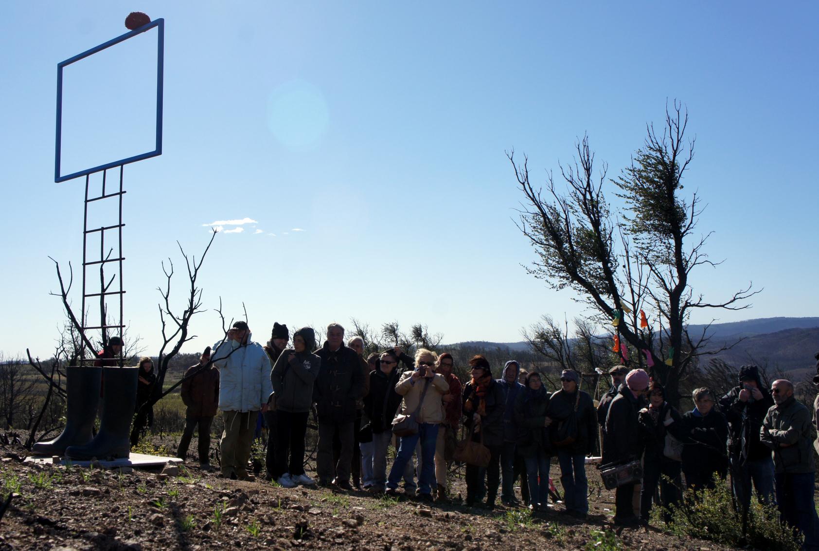 El dia 28 d’octubre, es va inaugurar l’exposició Després del foc: art al bosc. La cinquantena llarga de persones que hi van participar no oblidaran fàcilment l’experiència viscuda. Batuts literalment per ràfegues de vent de més 150 km/h, van recórrer pel mig del bosc de Capmany, amb moltes dificultats però de manera entusiasta, el kilòmetre i mig de recorregut durant el qual es van anar trobant la vintena d’instal·lacions escultòriques que constitueixen aquesta exposició d’art a la natura, organitzada per Populart. Les instal·lacions es podran visitar fins l’11 de novembre.