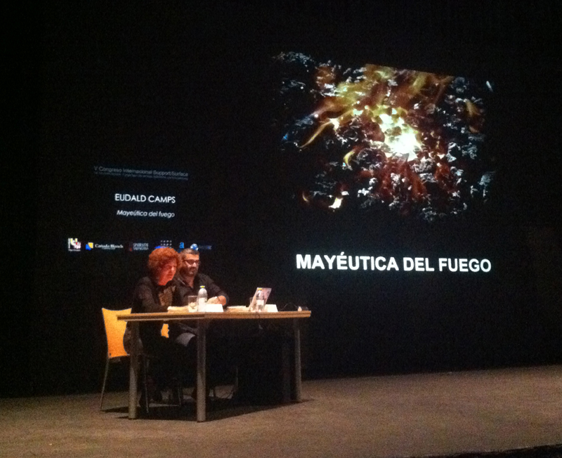 En este post quiero compartir brevemente mi experiencia en este «5º Congreso Internacional: Support/Surface: El Fuego bajo las Cenizas» (sin duda muy especial) en el que tenido la suerte de participar. He tenido la oportunidad de coincidir, tanto en ponencias como en los talleres, con auténticos profesionales de diferentes disciplinas procedentes de distintos países. Quiero mencionar especialmente a Renato Bocchi, arquitecto especialista en urbanismo y paisaje, que nos hizo una reflexión sobre el paisaje en la historia del arte del siglo XX hasta nuestros días. Antonio Caola, responsable del MUSE, nos habló sobre la arquitectura y la importancia de la luz de este Museo obra de Renzo Piano. También conocí a Isidro Hernández, conservador Jefe del Espacio de las Artes TEA en Tenerife, que nos habló del pintor bosnio Stipo Pranyko y del pintor surrealista canario Oscar Domínguez. Eudald Camps (a quien todos conocemos) que nos habló de la Mayeútica del fuego poniendo como ejemplo sus orígenes en la zona volcánica de Olot y Ripoll y escogiendo a varios artistas que trabajan en esta región. Eva Mesas que está realizando un trabajo formidable con Arte-terapia nos trajo increibles historias de personas con distintos grados de discapacidad mental que llegan a ser grandes creadores….